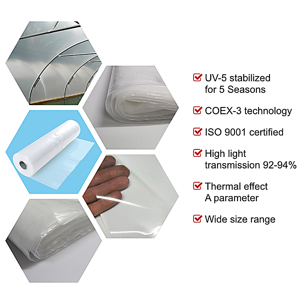 Hergestellt aus den hochwertigsten Rohstoffen in COEX-3-Technologie. Diese 3-lagige Folie wird mit Metallocen-Katalysatoren und hochwertigem PE-LD hergestellt. Die Produktionstechnologie garantiert hohe Festigkeit, lange Lebensdauer und eine hohe Lichtdurchlässigkeit. Die Materialstärke ist nicht der entscheidende Faktor für die Haltbarkeit – vielmehr ist es die Qualität der verwendeten Materialien im Herstellungsprozess.