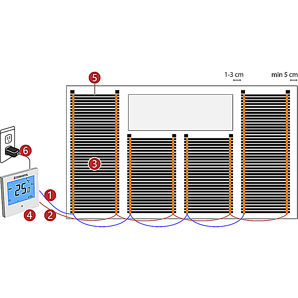 - Wenn Sie eine 50 cm breite Heizfolie mit 80W/m² benötigen, hinterlassen Sie bitte eine Notiz während des Bestellvorgangs. Andernfalls erhalten Sie die 1 Meter breite Heizfolie mit 80W/m².