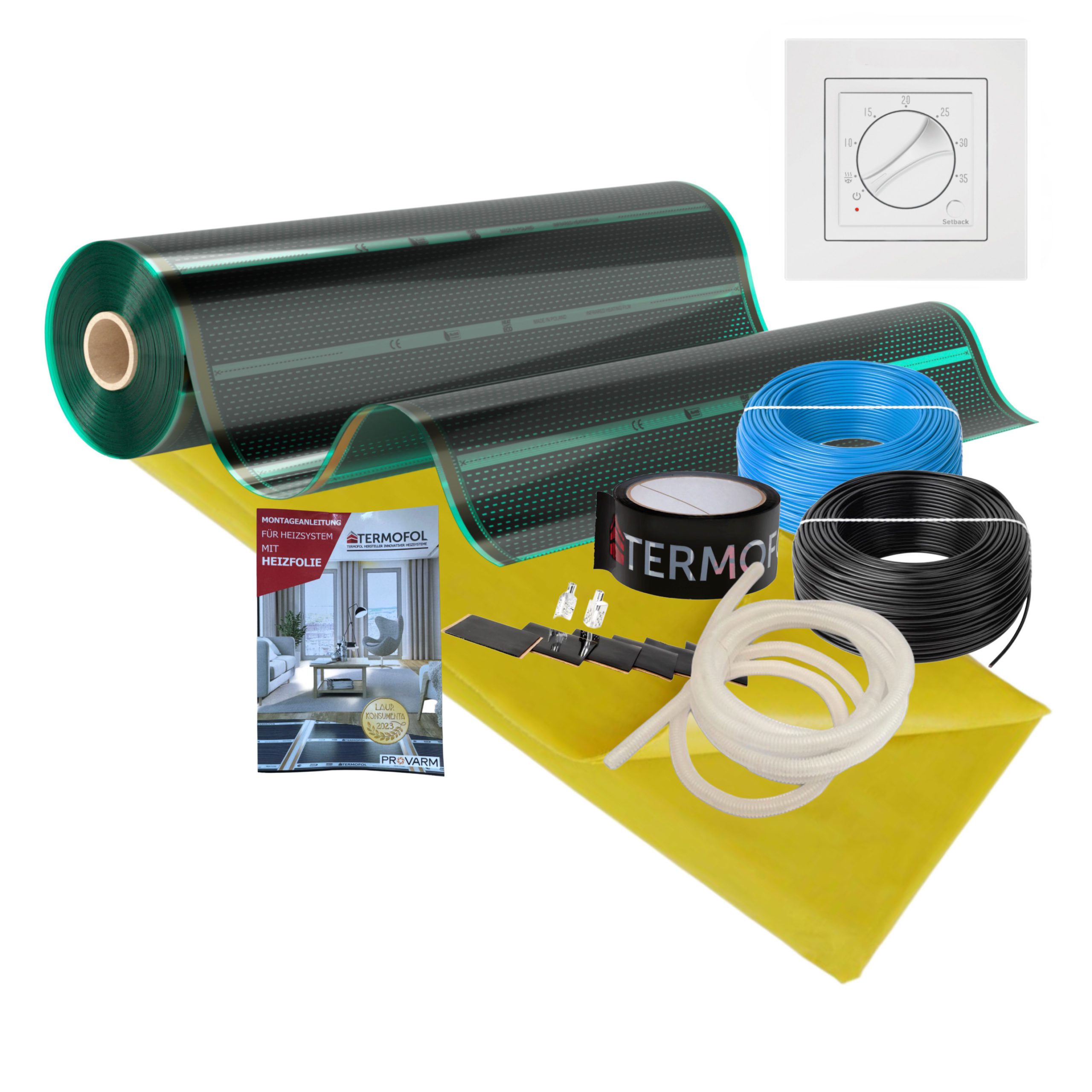 - Wir empfehlen, die Heizfolie von unten mit der auf der Auktion verfügbaren Schaumisolierung zu isolieren: https://provarm.de/produktkategorie/isolierung/
