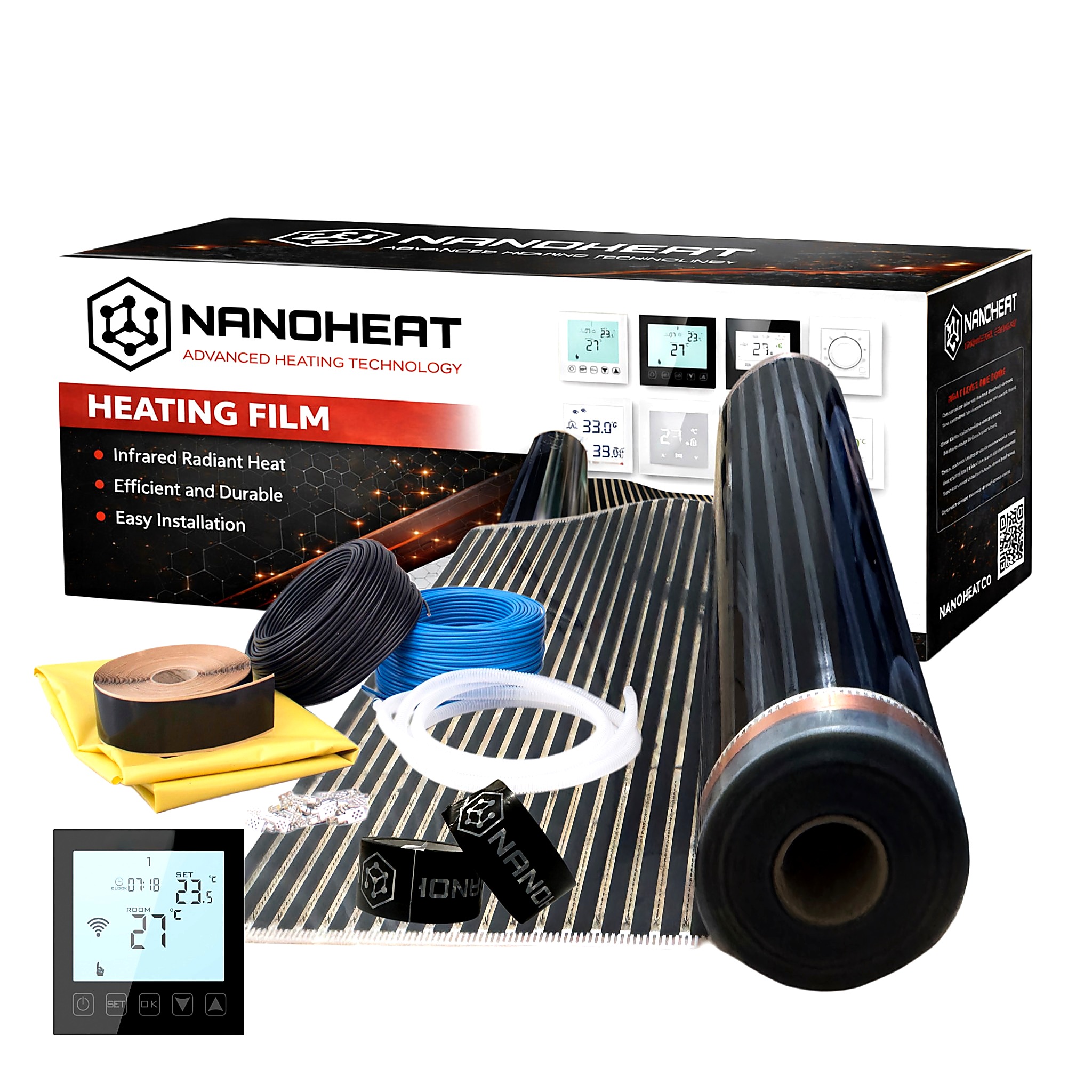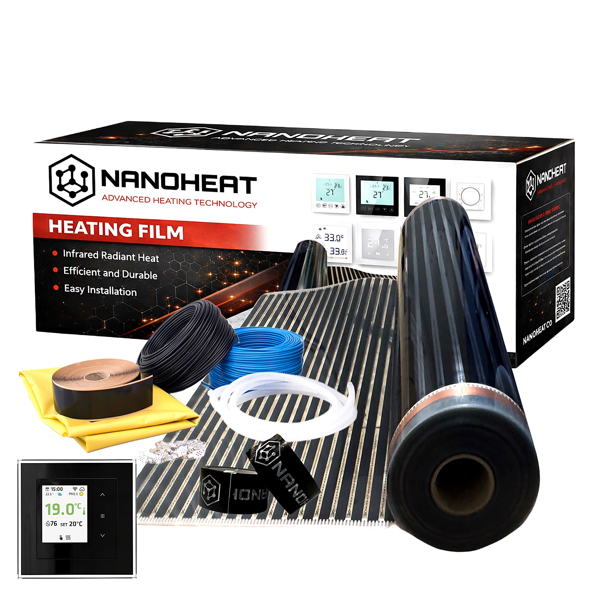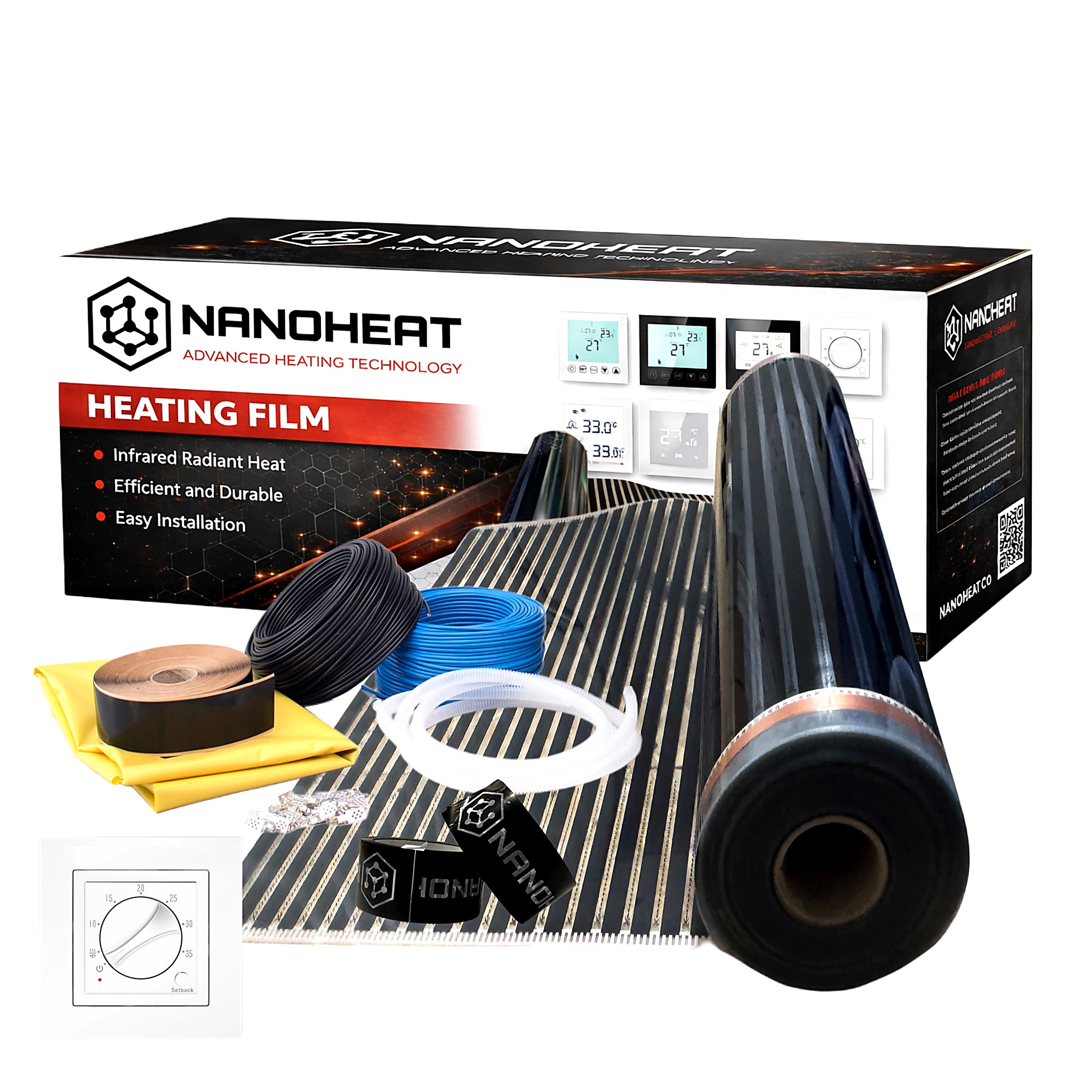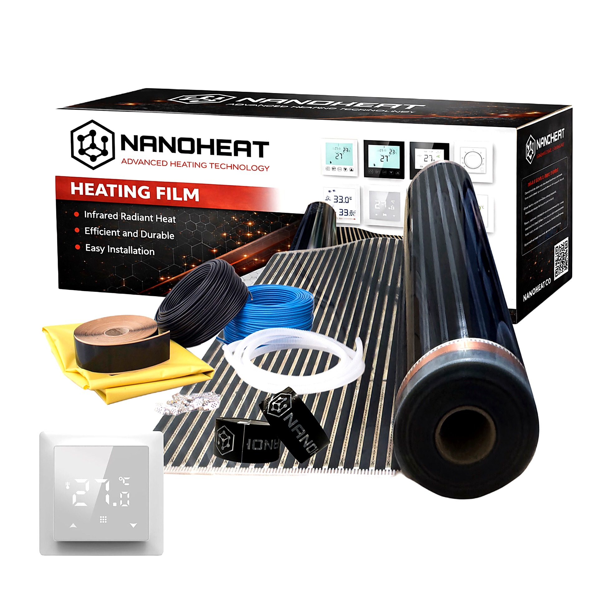 NANOHEAT Heizfolie Komplettset Effiziente Fußbodenheizung Flächenheizung 150W/m² 100cm breit